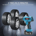 - نفخ سريع: بفضل المحرك القوي 120 وات - 500 وات، فإنه يملأ الإطارات في 60 ثانية فقط، مما يوفر الوقت.