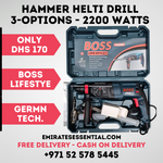 تتضمن الحزمة مثقاب دوار Boss 240V Professional SDS Plus بقوة 2200 وات.