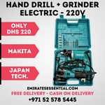 تتضمن الحزمة مجموعة مثقاب ماكيتا مقاس 13 مم وطقم مطحنة مقاس 4.5 بوصة